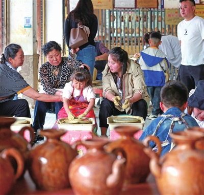 小朋友在花茂村陶艺馆体验陶艺制作(遵义图库·李仁军/摄)
