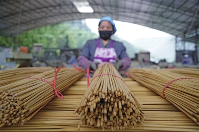 赤水市宝源乡联奉村楠竹加工厂工人忙着生产竹签(遵义图库·张浪/摄)
