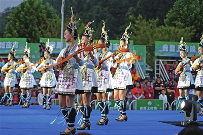 演员在桐梓“村晚”舞台上表演节目(记者 何骥淯/摄)