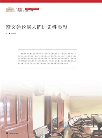我们即将迎来遵义会议召开90周年。这次会议是党的历史上一个生死攸关的转折点,以毛泽东同志为主要代表的中国共产党人领导党和红军实现了伟大的历史转折。与此同时,遵义会议开始确立以毛泽东同志为主要代表的马克思主义正确路线在党中央的领导地位,开始形成以毛泽东同志为核心的党的第一代中央领导集体。可以说,这是遵义会议在党的建设历史上的最大贡献,也是遵义会议对中国共产党领导的中国革命赢得最后胜利的最大贡献。