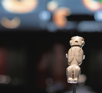 5月16日,位于安徽省马鞍山市含山县的凌家滩遗址博物馆迎来开馆试运营。这是当日在凌家滩遗址博物馆拍摄的玉蹲(坐)姿人。(新华社/图)