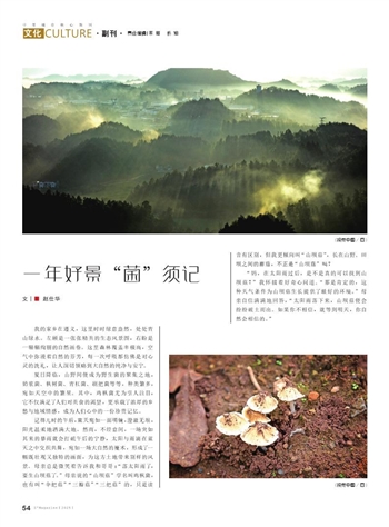记得儿时的午后,蓝天宛如一面明镜,澄澈无垠,阳光温柔地洒满大地。然而,不经意间,一场突如其来的暴雨就会打破午后的宁静,太阳与雨滴在蓝天之中交织共舞,宛如一场大自然的魔术,形成了一幅既壮观又独特的画面,为这方土地带来别样的风景。母亲总是微笑着告诉我和哥哥:“落太阳雨了,要生山坝菇了。”母亲说的“山坝菇”学名叫鸡枞菌,也有叫“伞把菇”“三瓣菇”“三把菇”的,只是读音有区别,但我更倾向叫“山坝菇”,长在山野、田坝之间的蘑菇,不正是“山坝菇”吗?