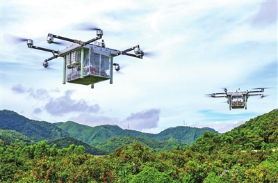 6月28日,在广州市从化区天人山水荔枝园,物流无人机运输刚刚采摘的荔枝。目前,这条“飞机+冷链”的“荔枝飞路”已经覆盖全国约2800个县域,刚下枝头的荔枝次晨或者隔日便可送到消费者手中,身在各地都能享受几乎与岭南无异的鲜美荔枝。(新华社/图)