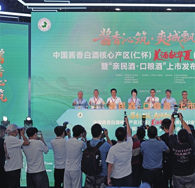 9月10日,中国酱香白酒核心产区(仁怀)美酒献华夏(贵阳站)宣传推介暨“亲民酒·口粮酒”上市发布会在第十四届贵州酒博会酱香核心产区馆举行,图为新推出的38款“亲民酒·口粮酒”亮相发布。