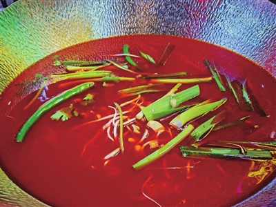 遵义酸汤的“火”,既源于传统工艺的坚守,也得益于现代技术的赋能。最黔线食品有限公司以“守正创新”为核心,将精选的团子辣椒与西红柿按特定比例调配,沿用洞藏发酵的古法技艺,又融入现代品控标准,历经三个月慢发酵,最终酿出每克含260万活性乳酸菌的高品质酸汤。“这不仅是对传统工艺的坚守,更是对健康饮食理念的践行。”何洪飞说,产品既留住了老遵义的地道酸香,又精准契合当代人健康饮食的需求。